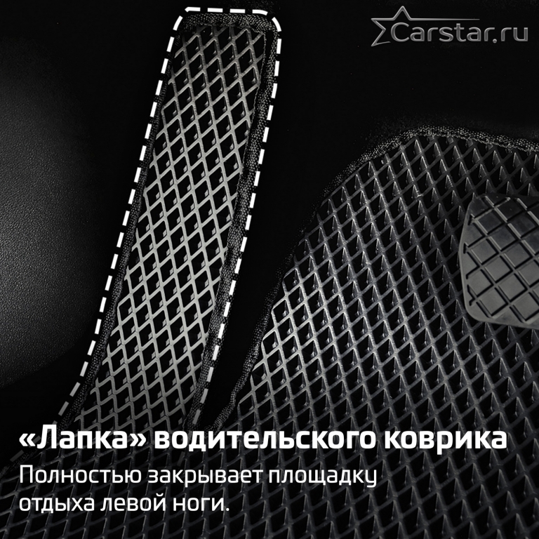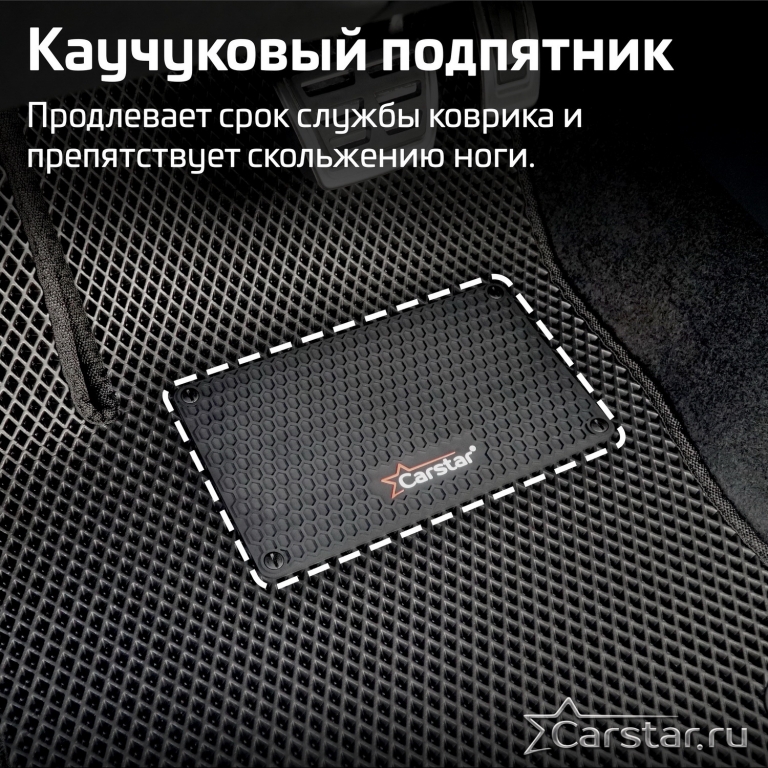 Коврики EVA надёжно крепятся с помощью оригинальных систем фиксации. Благодаря клипсам и липучке коврики защищены от смещений, что обеспечивает комфорт и безопасность вождения. Максимальное удобство также достигается точными, улучшенными лекалами для каждого автомобиля.