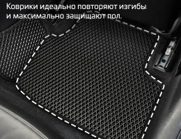 Изделия EVA имеют специальную ячеистую структуру (ячейки глубиной 8 мм), которая эффективно задерживает грязь и воду, оставляя вашу обувь и поверхность обивки салона или багажника абсолютно чистыми. Также эти ячейки очень легко и быстро очищаются без применения специальных инструментов, в том числе, при помощи бесконтактной мойки.