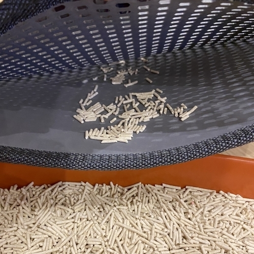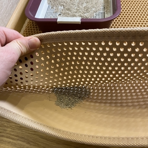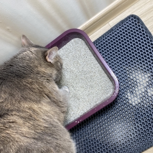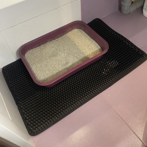 Удобство чистки: Из коврика можно легко пересыпать накопившийся наполнитель обратно в лоток, затем стряхнуть или промыть, что делает процесс чистки простым и быстрым.