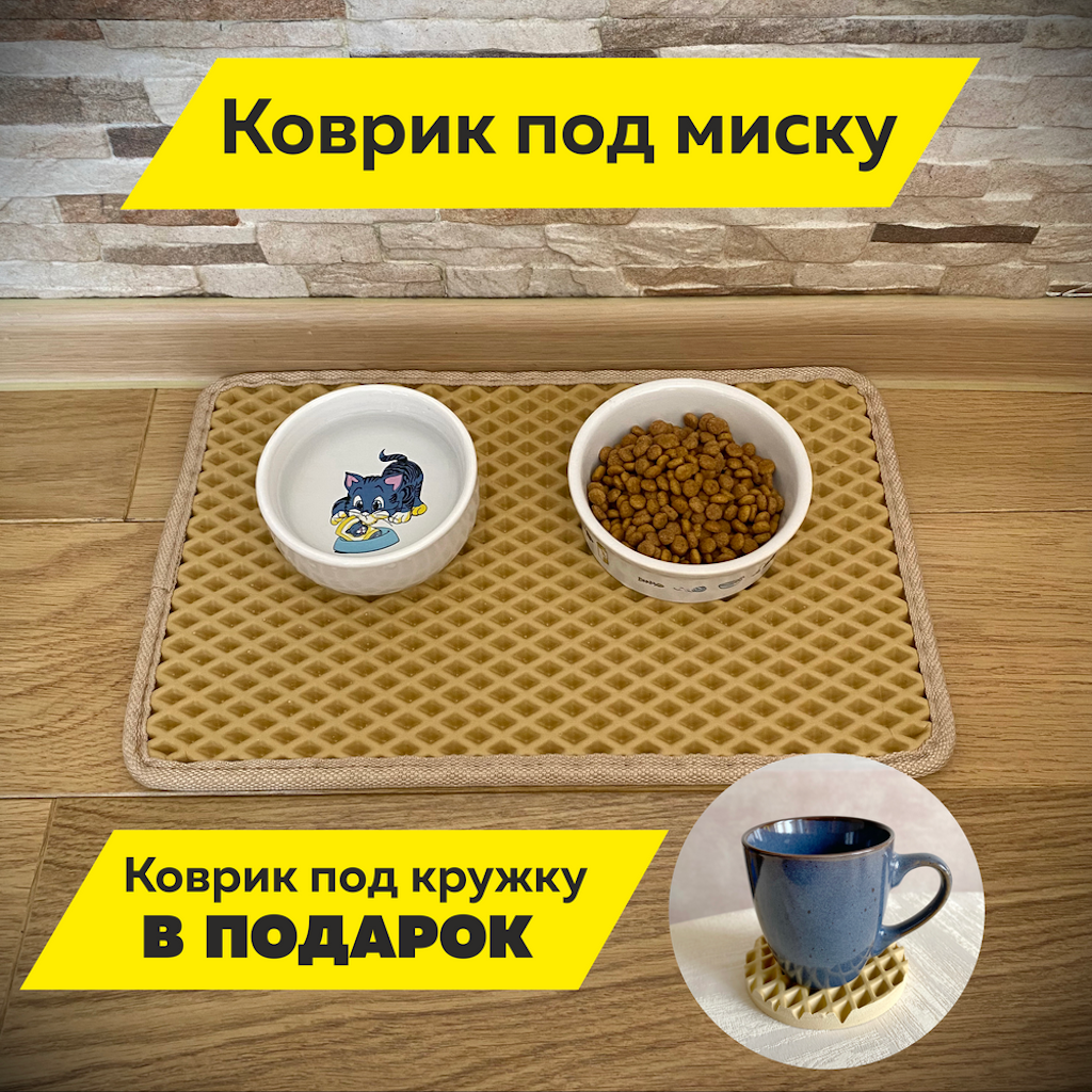 Коврик под миску водонепроницаемый и не скользит по полу. Коврик легко и быстро чистить, можно помыть под струёй воды! Коврик EVA не имеет запаха, он безопасен для животных и имеет сертификат качества "Ростест-Москва".